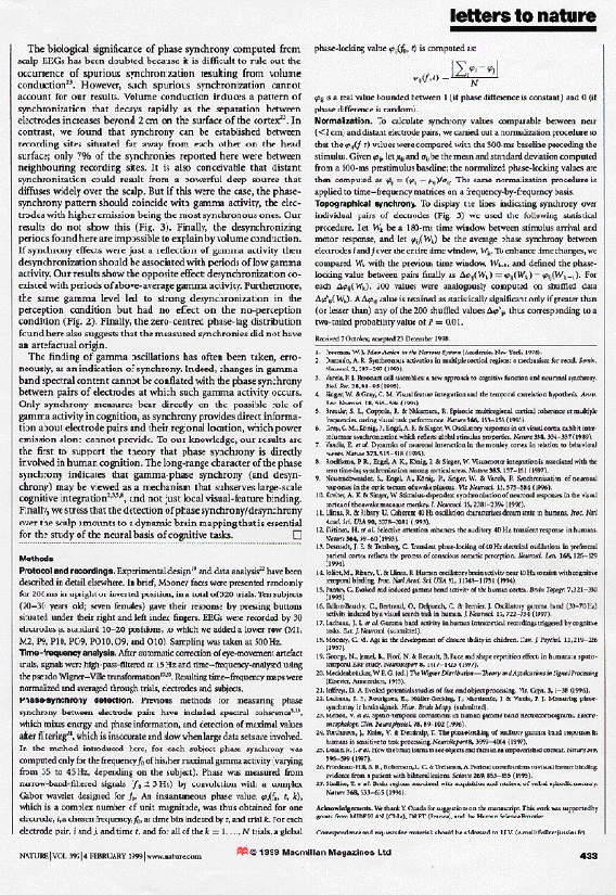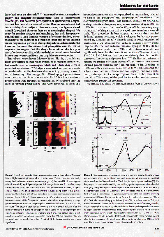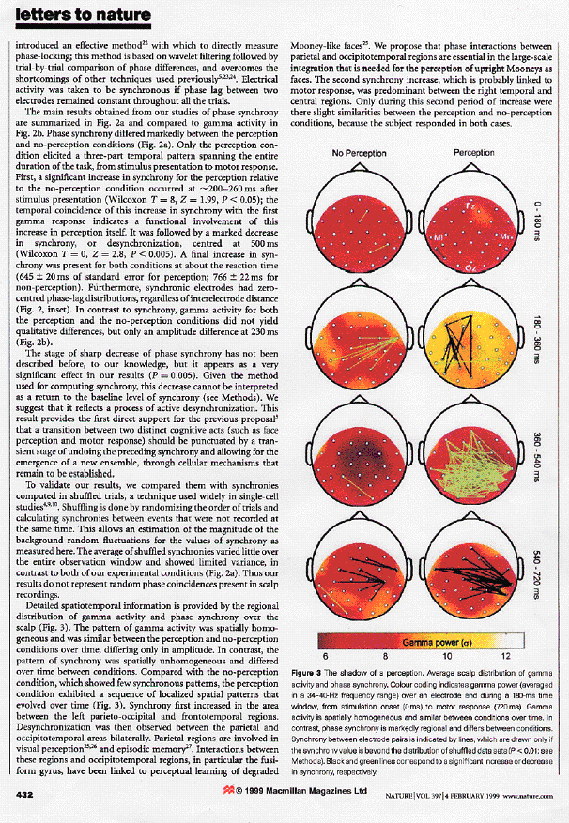 인지 능력이 커질 때 뇌파의 감마 파워 중 34-40Hz 위상 동기화의 발견도 약50 년 전 가설로 나온 이론이며 1999년에 네이처지에 가설 입증 논문이 그 좋은 연구의 예라고 하겠다. 또한 그 이론을 바탕으로 인지력의 척도로 활용하기도 한다.